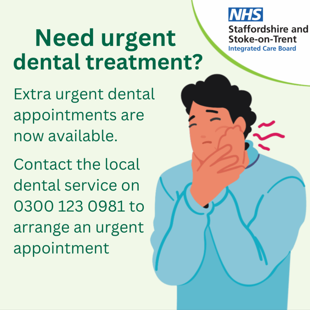 Need Urgent Dental Care? Help Is Now Easier to Access If you’re in pain or experiencing an urgent dental issue, NHS urgent dental appointments are now available across Staffordshire and Stoke-on-Trent. As part of the Government’s national commitment to deliver 700,000 additional urgent dental appointments, the Staffordshire and Stoke-on-Trent Integrated Care Board (ICB) is expanding […]